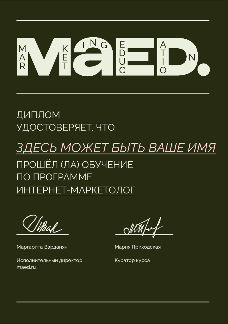 Я начала развивать свой бизнес около года назад, и сегодня мои товары представлены на всех крупных российских маркетплейсах. Мой проект стал тренировочной площадкой для студентов академии MAED. Вместе мы успешно продвигаем и продаем товары на OZON, Wildberries, Яндекс. Маркет и Сбермегамаркет